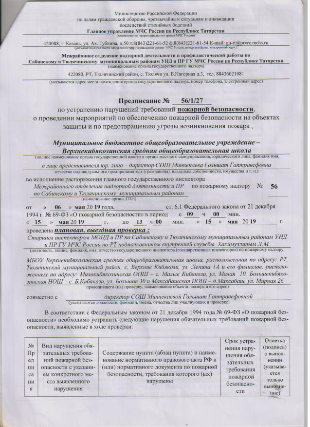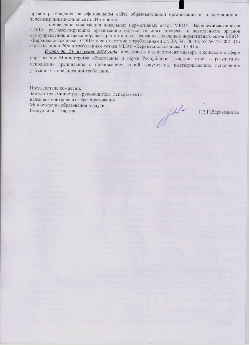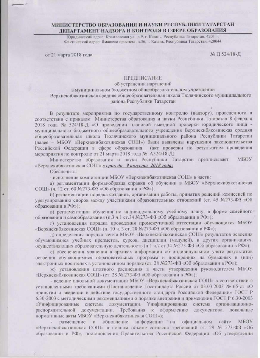 Предписания органов, осуществляющих государственный контроль (надзор) в сфере образования, отчеты об исполнении таких предписаний.\ Мәгариф өлкәсендә дәүләт контролен (күзәтчелеген) гамәлгә ашыручы органнар күрсәтмәләре, мондый күрсәтмәләрнең үтәлеше турында хисаплар.