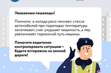 Снег и метель — испытание для всех участников движения. Призываем и водителей, и пешеходов быть предельно внимательными.