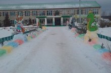 Школьный двор каждый день пополняется разноцветными фигурами из снега, а вечером школа горит огнями. Идёт активная подготовка к Новому Году.