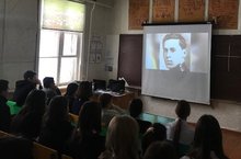 Яшь герой-антифашист көненә багышланган тәрбия сәгатендә укытучы Төхвәтуллин Л. Т. 5-8, 9 нчы сыйныф укучыларына кешелек тарихында иң куркыныч сугыш булган, 1941-1945 елларда туган балачаклары булмаган яшь батырлар турында сөйләде.