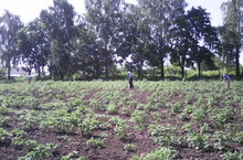 Работа на пришкольном участке продолжается, идет прополка картофеля, лука, моркови