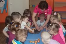 Сегодня дети младшей группы вместе с воспитателем посадили лук. Каждый день они будут наблюдать за тем, как будут расти посаженные ими луковицы, а воспитательница Гузель Анваровна расскажет о пользе " зимних витаминов".
