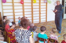 Сегодня у нас в гостях сотрудник МЧС .Он познакомил ребят с деятельностью МЧС России, раскрыл необходимость и важность МЧС в современной жизни, познакомил детей с историей развития пожарной охраны, с профессией пожарного, познакомил с правилами пожарной безопасности, предложил детям поиграть в игру «Юный пожарный». И конечно же рассказал о мужестве и самоотверженности людей этой профессии.