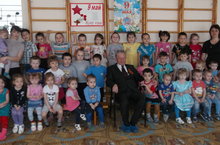 Бүген балалар бакчасында Бөек Ватан сугышы ветераны Фәррәхов Зәки абый белән очрашу булды.( материаллар медиатекада)