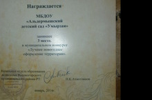 В муниципальном конкурсе "Лучшее новогоднее оформление территории" наш детский сад занял 3 место.