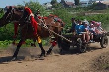 Татар халыкнын йолаларына туры китереп, атлар җигеп, аларны бизәп авыл урамнары буйлап Сабантуй бәйрәменә бүләкләр җыйдык. Мәктәп укучылары бу эштә бик актив катнашты. 05.06.2015