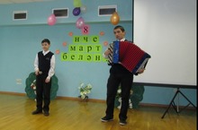 7 нче март көнне мәктәбебездә егетләрдән генә торган концерт уздырылды. Алар барлык хатын-кыз укытучыларны, укучы кызларны котлап һәр класстан чыгышлар ясадылар, Концерт ахырында Нотфуллин Салават искиткеч матур итеп гармунда үзе уйнап җырлавы барыбызны таң калдырды. Кабат-кабат сәхнәгә чакырып, рәхмәтләребезне җиткердек. Безнең Салават киләчәчәктә дә шул сәләтен югалтмыйча, зур сәхнәләргә күтәрелсен иде, Уңышлар телик аңа! 07.03.2014