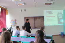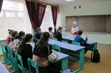 Тәрбия сәгатендә фельдшер И.Н.Зиннатуллина укучыларга ВИЧ-инфекция турында мәгълүмат, сәламәт яшәу рәвеше алып бару өчен