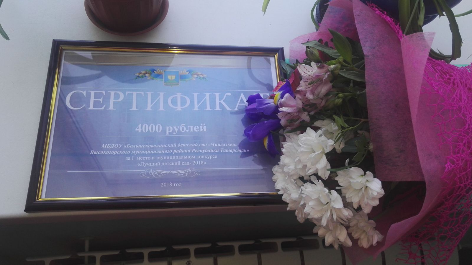 За достигнутые успехи, высокие показатели по итогам 2017-2018 учебного года, коллективу нашего детского сада вручили сертификат на августовской конференции.