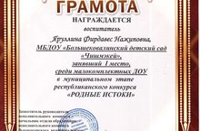 "Родные истоки" конкурсында катнашып беренче урынга лаек булдык.