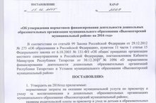 Постановление исполнительного комитета Высокогорского муниципального района "Об утверждении нормативов финансирования деятельности ДОО на 2016 г." 17.12.2015