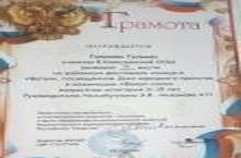 Халыклар бердәмлеге көненә багышланган "ВАТАН" фестиваль-конкурсында безнең мәктәпнең 6 нчы сыйныф укучысы Газизова Гөлназ 3 нче урынны яулады. Аңа алда да зур уңышлар телибез!