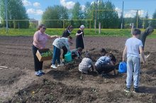 Дружный коллектив нашей школы посадил овощи на пришкольный участок. / Мәктәбебезнең дус коллективы мәктәп яны бакчасына яшелчәләр утыртты. 10.05.2023