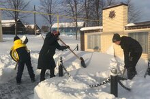 Наши учащиеся регулярно чистят от снега территорию памятника/Безнең укучылар памятник янын кардан даими чистартып торалар. 21.01.2022