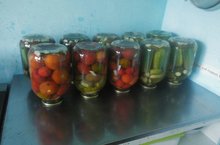 Овощи которые выращивали на пришкольном участке мариновали для угощения зимой.