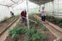 Учителя трудятся на пришкольном участке, в парнике. Укытучылар мәктәп бакчасында, парникта эшлиләр. 04.06.2020