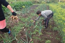 Учащиеся собирают огурцы, помидоры, укроп, чеснок и другие специи из пришкольного участка. А учителя и повара маринуют их на зиму.