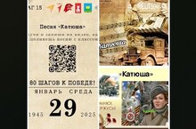 "Җиңүгә 80 адым". 15 нче адым. "Катюша" җыры - мөгаен, сугыш елларының иң танылган жырлар нын берседер. Күңелле һәм дәртле көй балаларны яшь кызларның җыры ишетелгән биек яр буйларына алып китә. Кыз нәрсә турында җырлый сон? Мәхәббәт, тугрылык һәм Ватан турында. Проект кысаларында Олы Кавал төп гомуми белем бирү мәктәбе укучылары "Катюша" җырын җырладылар.
