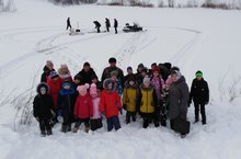 Учащиеся присутствовали при создании прорубя на искусственном озере для доступа рыбам кислорода.
