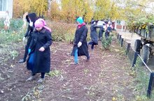 Учащиеся убирают цветы и собирают семена . /Укучылар чәчәклекне җыештыралар һәм чәчәк орлыкларын җыялар. 09.10.2018