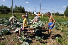 На пришкольном участке учащиеся работают добросовестно./Мәктәп бакчасында укучылар намус белән эшлиләр. 25.07.2018