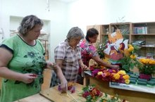 Укытучылар мәктәп бакчасында үскән аллы-гөлле чәчәкләрдән композиция ясыйлар. 23.08.2017