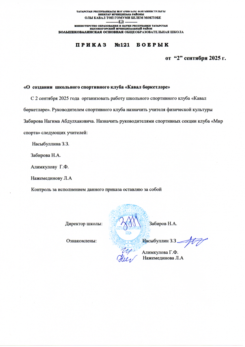 Руководитель ШСК -Н.А.Забиров, учитель физической культуры.