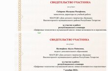 7 декабря на базе ГАОУ "Полилингвальный комплекс "Адымнар" для педагогов дополнительного образования художественной направленности, методистов и заведующих отделами состоялся республиканский семинар по теме " Цифровые технологии в музыкальной школе: новые возможности и перспективы". Семинар слушали заместитель директора Сабирова М.Р. и педагог дополнительного образования Мустафина А.Р.