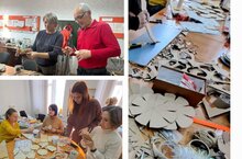 Традиционно в начале декабря в Балкыше проходит "Мастерская Деда Мороза". Педагоги за круглым столом вырезают, клеют новогодние украшения, поделки для праздничного оформления.
