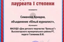 Ученица объединения «Юный журналист» Симанова Ариадна читает трогательное стихотворение «Монолог пушистого бойца». Поздравляем Ариадну и ее педагога Галявиеву В.Ю. с дипломом лауреата I степени в VIII Республиканском конкурсе детского творчества «На страже отечества»
