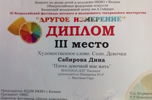 26-29 марта в Доме культуры МВД РТ прошел III Всероссийский фестиваль детского и молодежного театрального мастерства "Другое измерение", в котором участвовала и заняла почетное III место обучающаяся объединения "Художественное слово" Сабирова Дина ( руководитель Шакирова Ю.Р.).Поздравляем!