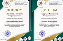 Наши педагоги повышают свое педагогическое мастерство и сами принимают участие в республиканских методических конкурсах. Поздравляем Горбунову Динару Нургаяновну, Мустафину Айгуль Радиковну и Галкину Анастасию Геннадьевну с участием в номинации "Моя методическа копилка".