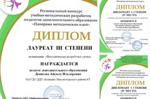 Педагоги Дома детского творчества приняли участие в региональном конкурсе учебно- методических разработок "Панорама методических идей". Саитова Ольга Александровна- лауреат 3 степени, Галявиева Виктория Юрьевна -диплом 1 степени, Денисова Айсылу Ильдаровна- лауреат 3 и диплом 1 степени. Успехов!!!