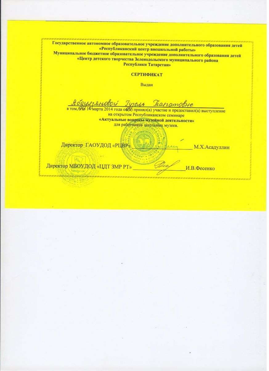 Абдулазянова Гузель Талгатовна - Республиканский семинар "Актуальные вопросы музейной деятельности"