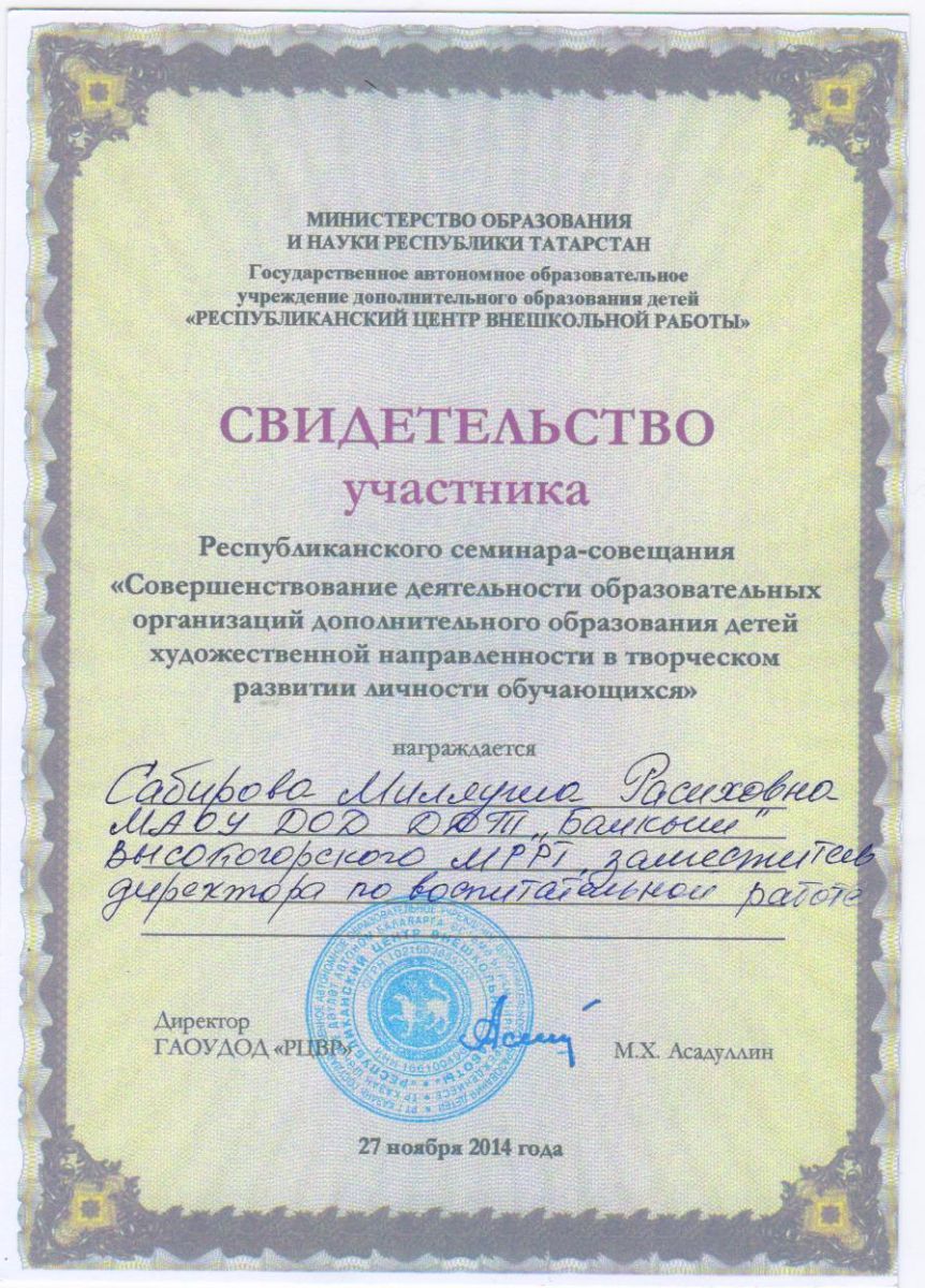 Сабирова Миляуша Расиховна -Республиканский семинар (ноябрь 2014 г.)