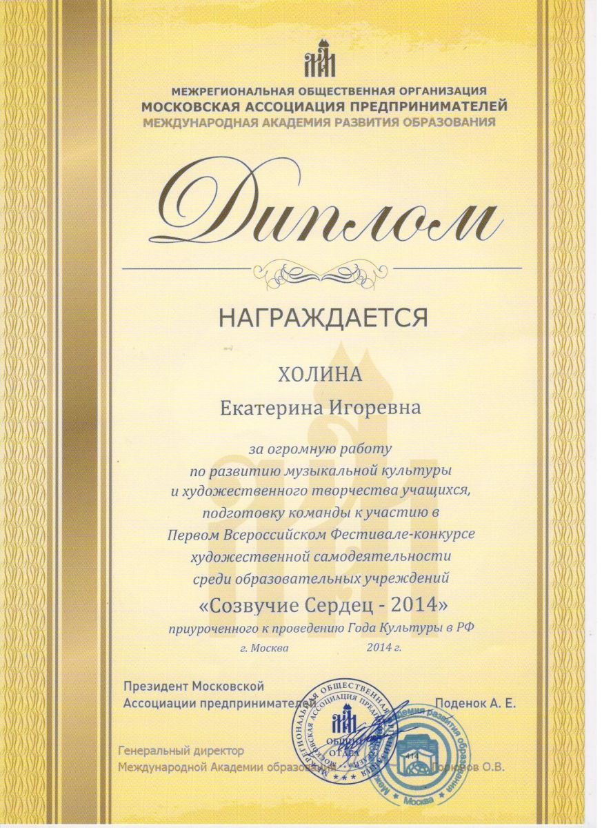 Холина Екатерина Игоревна - Всероссийский форум "Педагоги России:инновации в образовании"