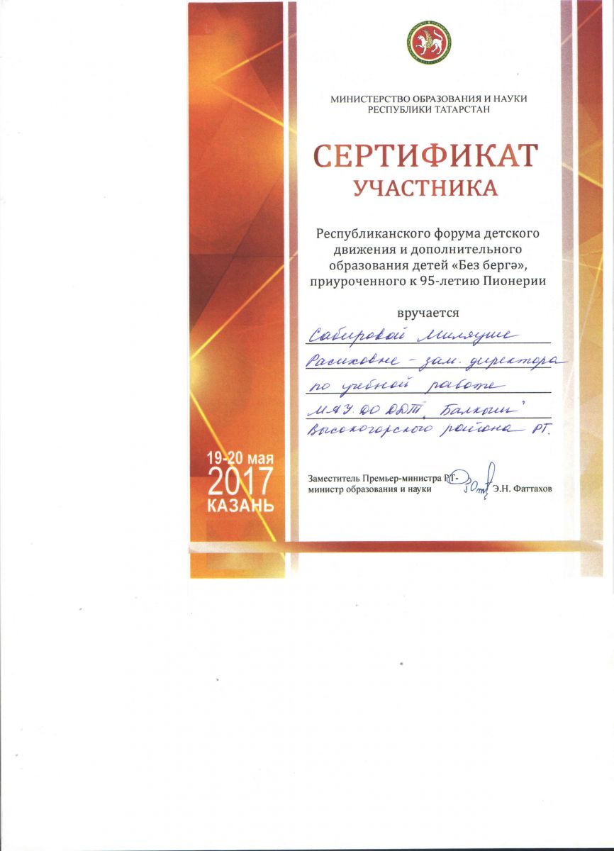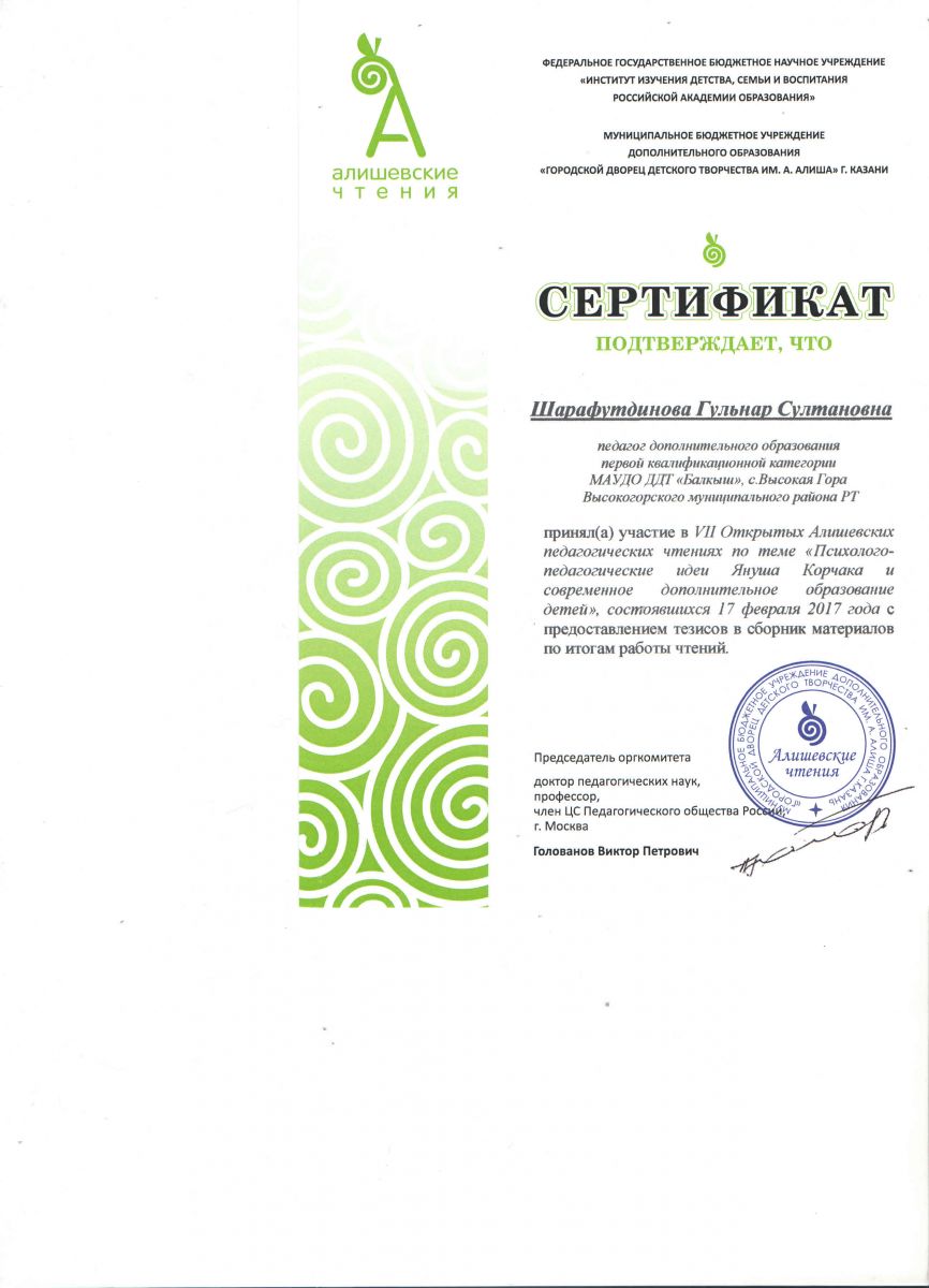 Мустафина Айгуль Радиковна - VII Открытые Алишевские педагогические чтения, сертификат, феврвль 2017