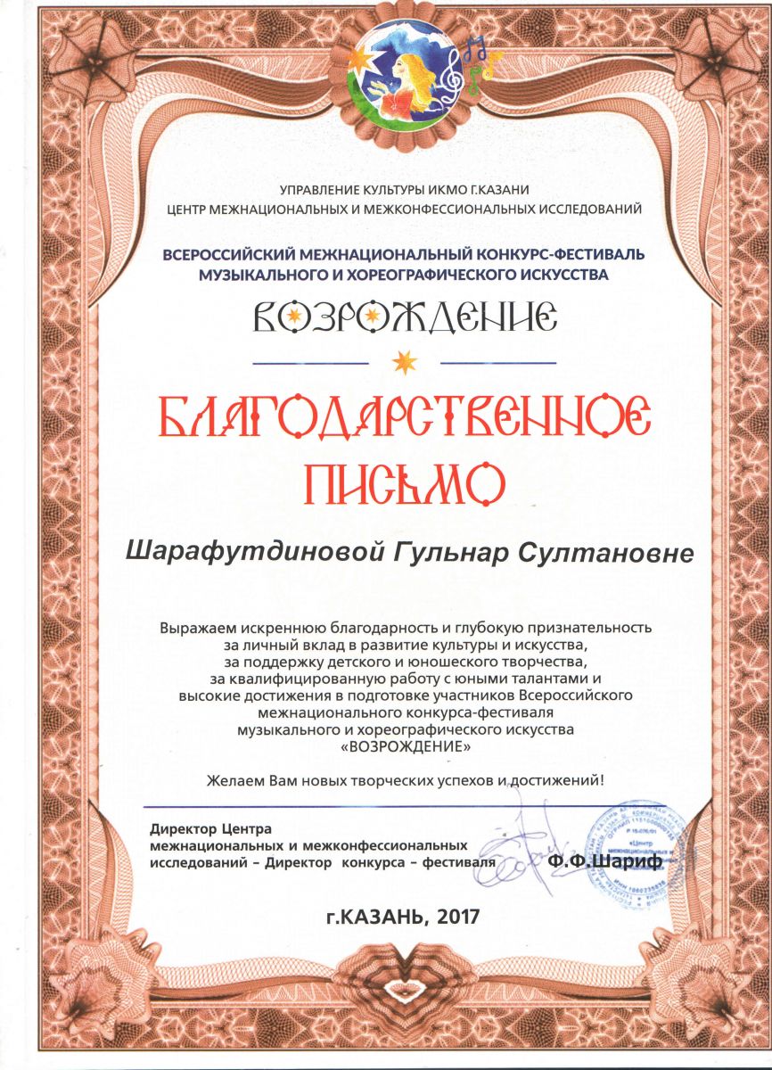Вафина Гульназ Фрильевна - Благодарственное письмо РЦВР