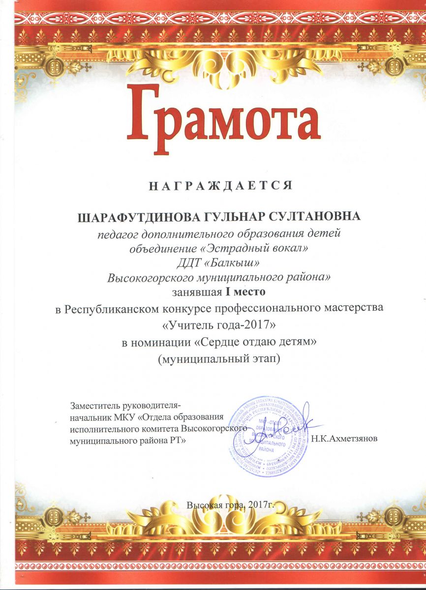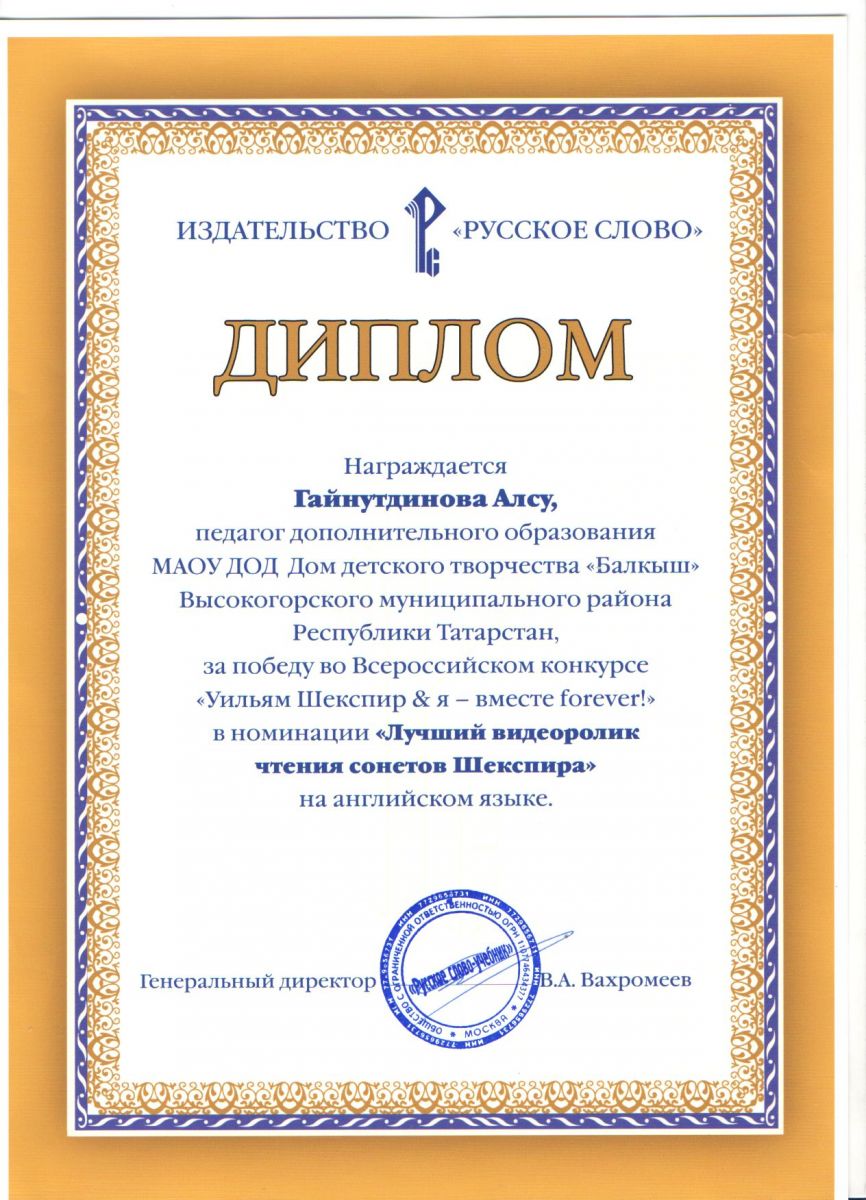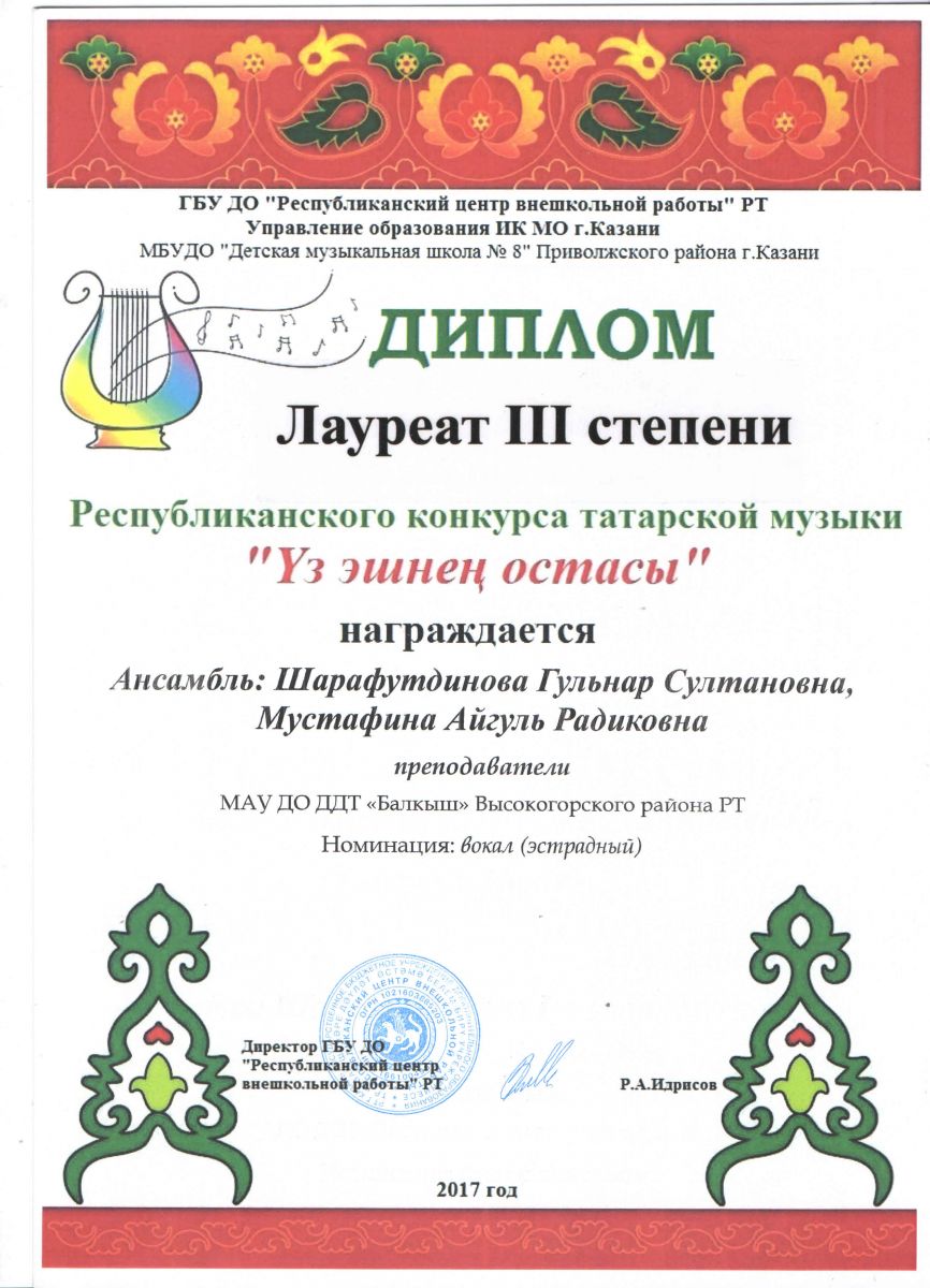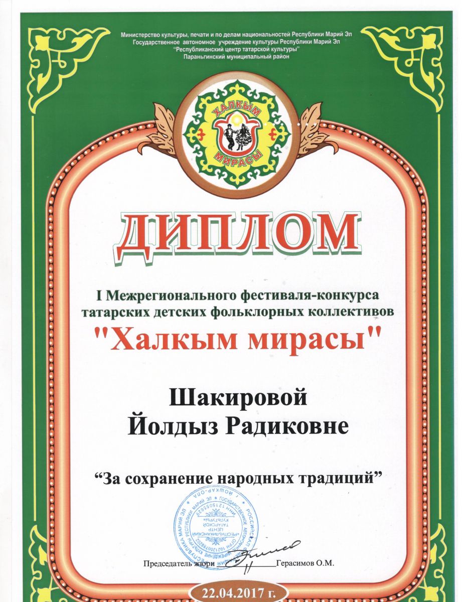 Шакирова Юлдуз Радиковна - Диплом "За сохранение народных традиций"