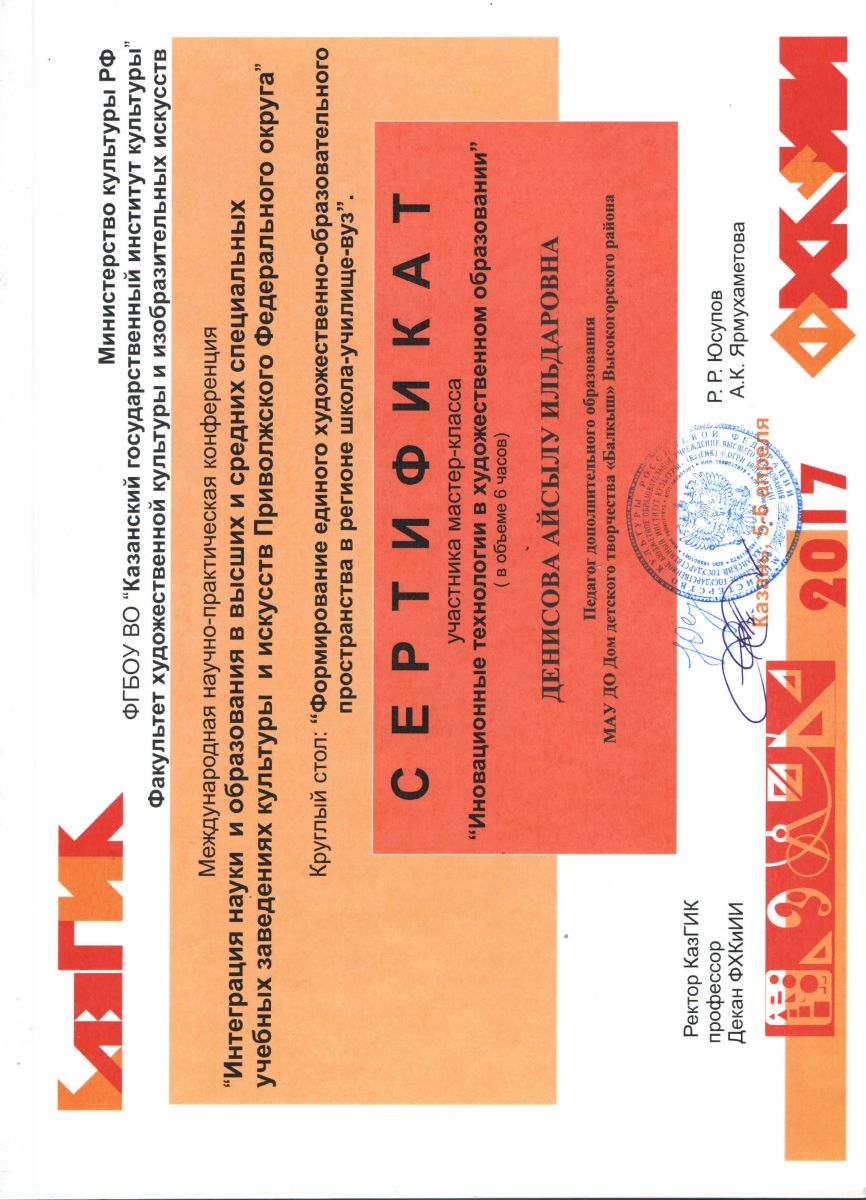 Денисова Айсылу Ильдаровна - Международная НПК "Интеграция науки и образования..."5-6 апреля 2017 г.