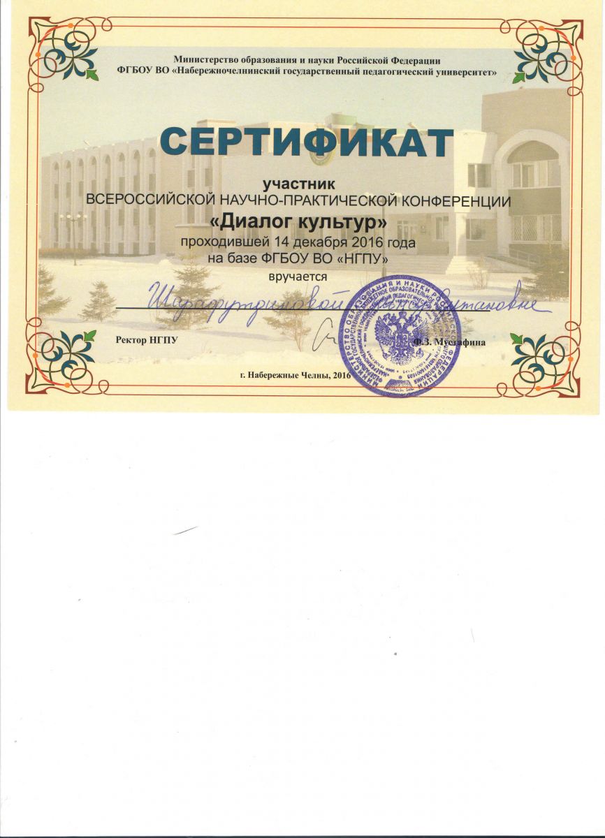 Шарафутдинова Гульнар Султановна - Всероссийская научно- практическая конференция "Диалог культур"