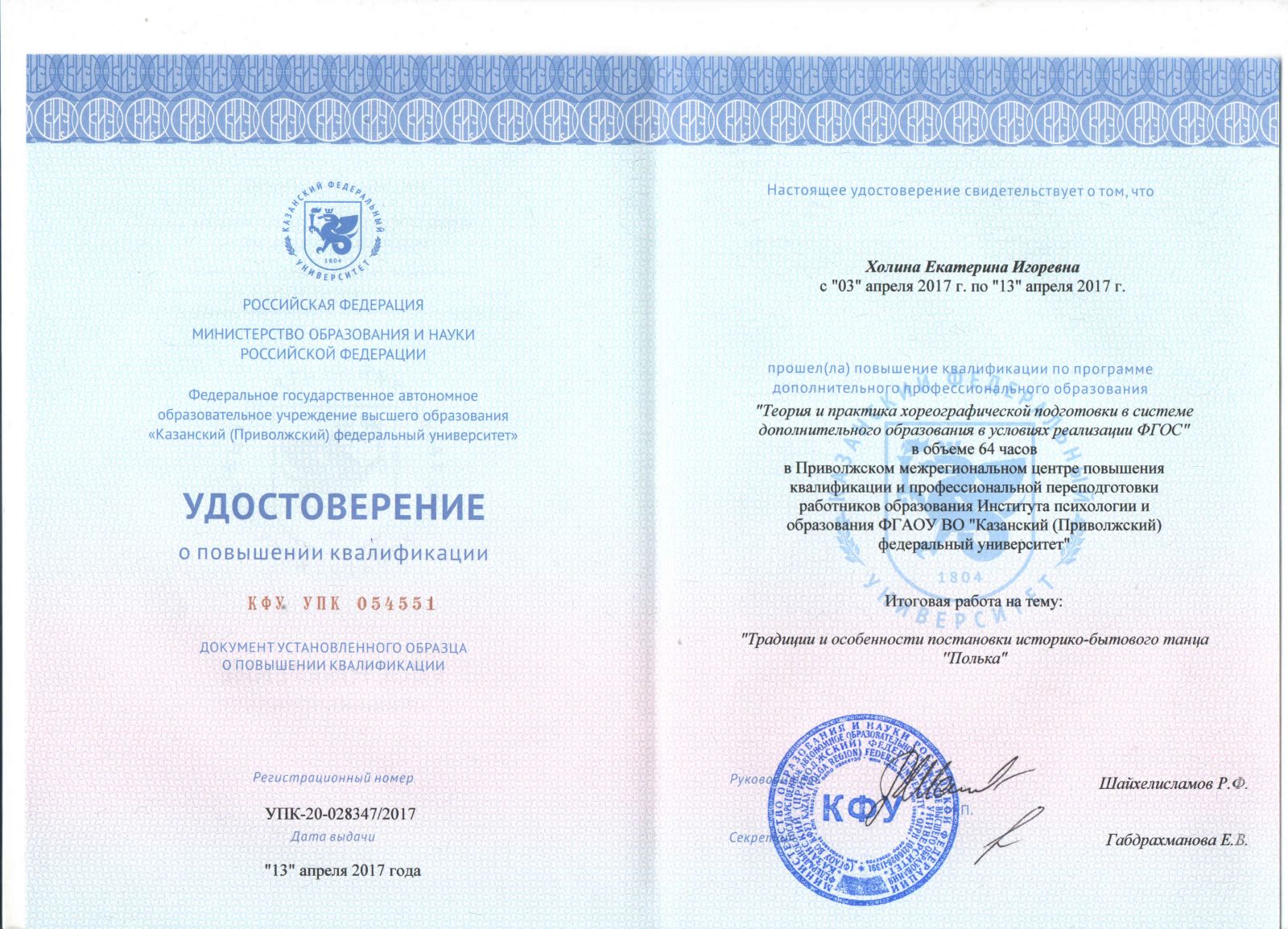 Холина Екатерина Игоревна - стажировка, апрель 2017
