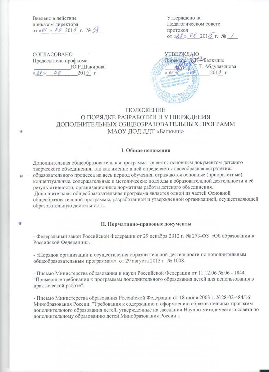 Положение о порядке разработки и утверждения дополнительных общеобразовательных программ ДДТ