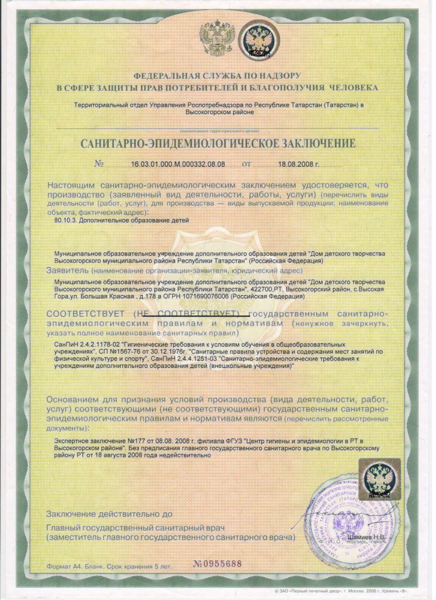 Санитарно-эпидемиологическое заключение