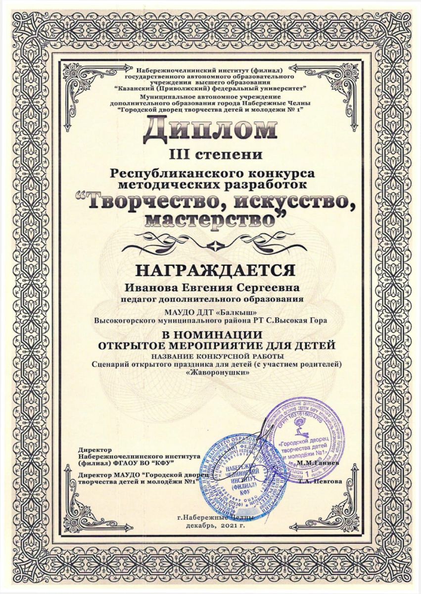 Муниципальное автономное образовательное учреждение дополнительного образования Дом детского творчества «Балкыш» Высокогорского муниципального района РТ
