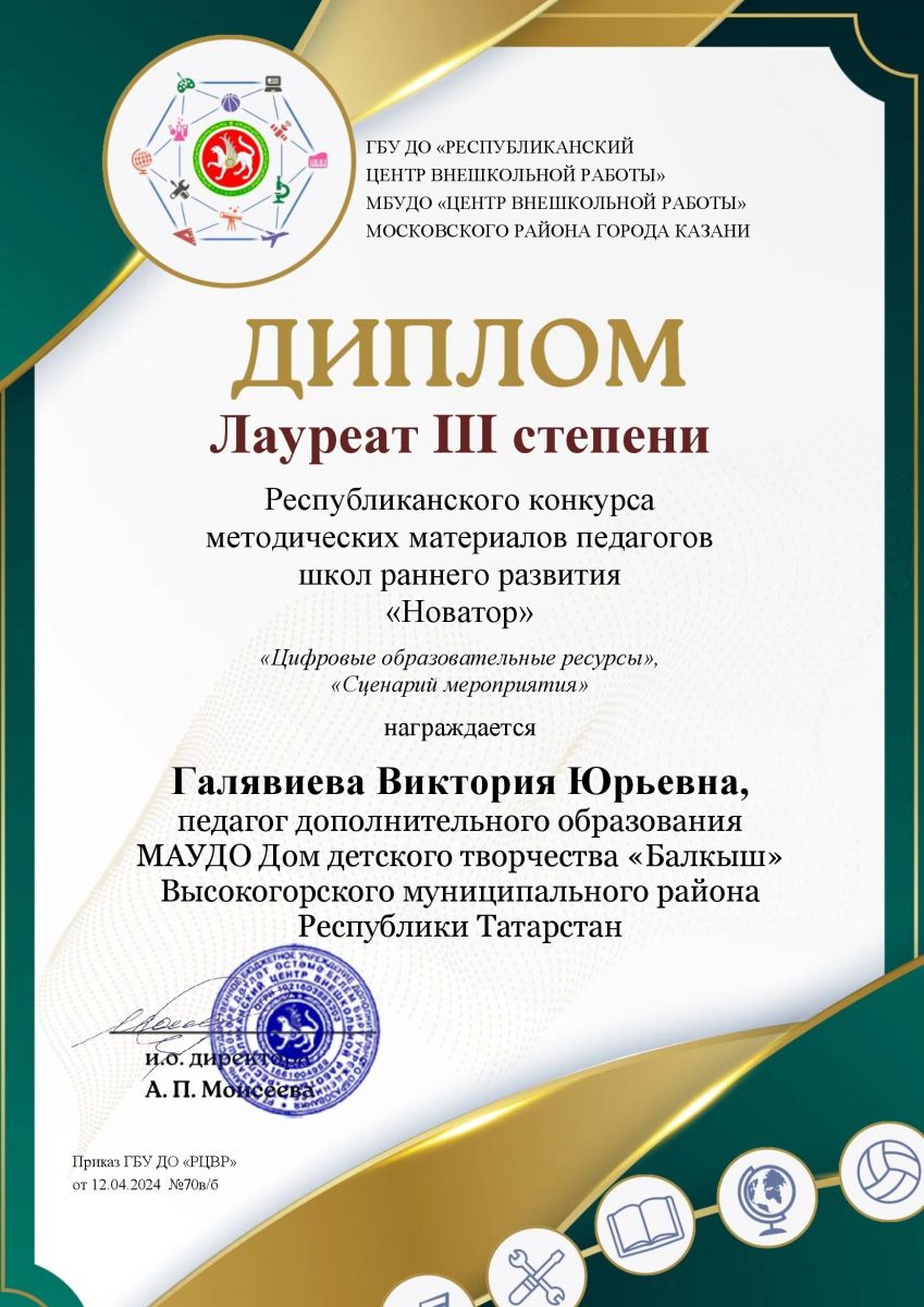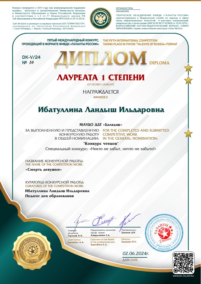 Галявиева Виктория Юрьевна - II Всероссийский конкурс авторских произведений "Пером написанные строки...", диплом 1 степени