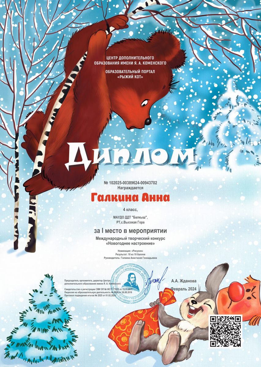 Международный творческий конкурс "Новогоднее настроение" - Галкина Анна, 1 место