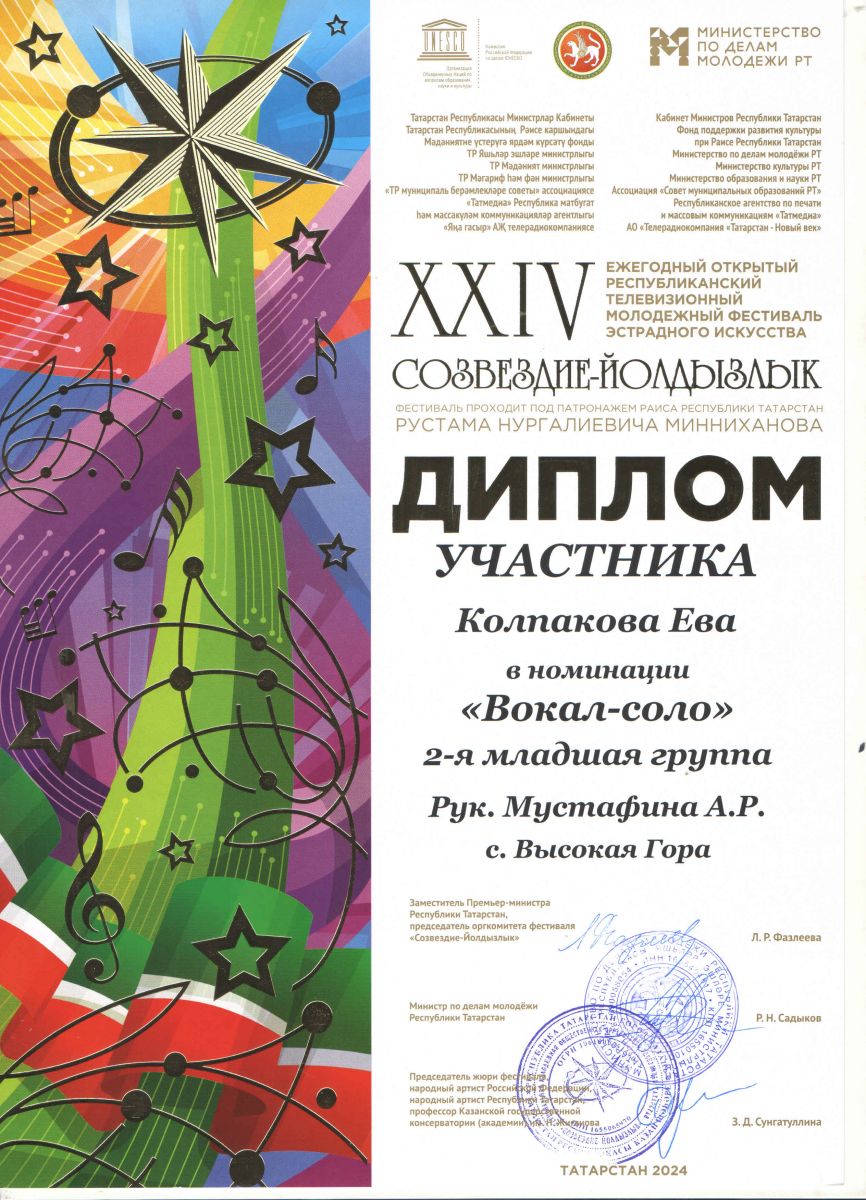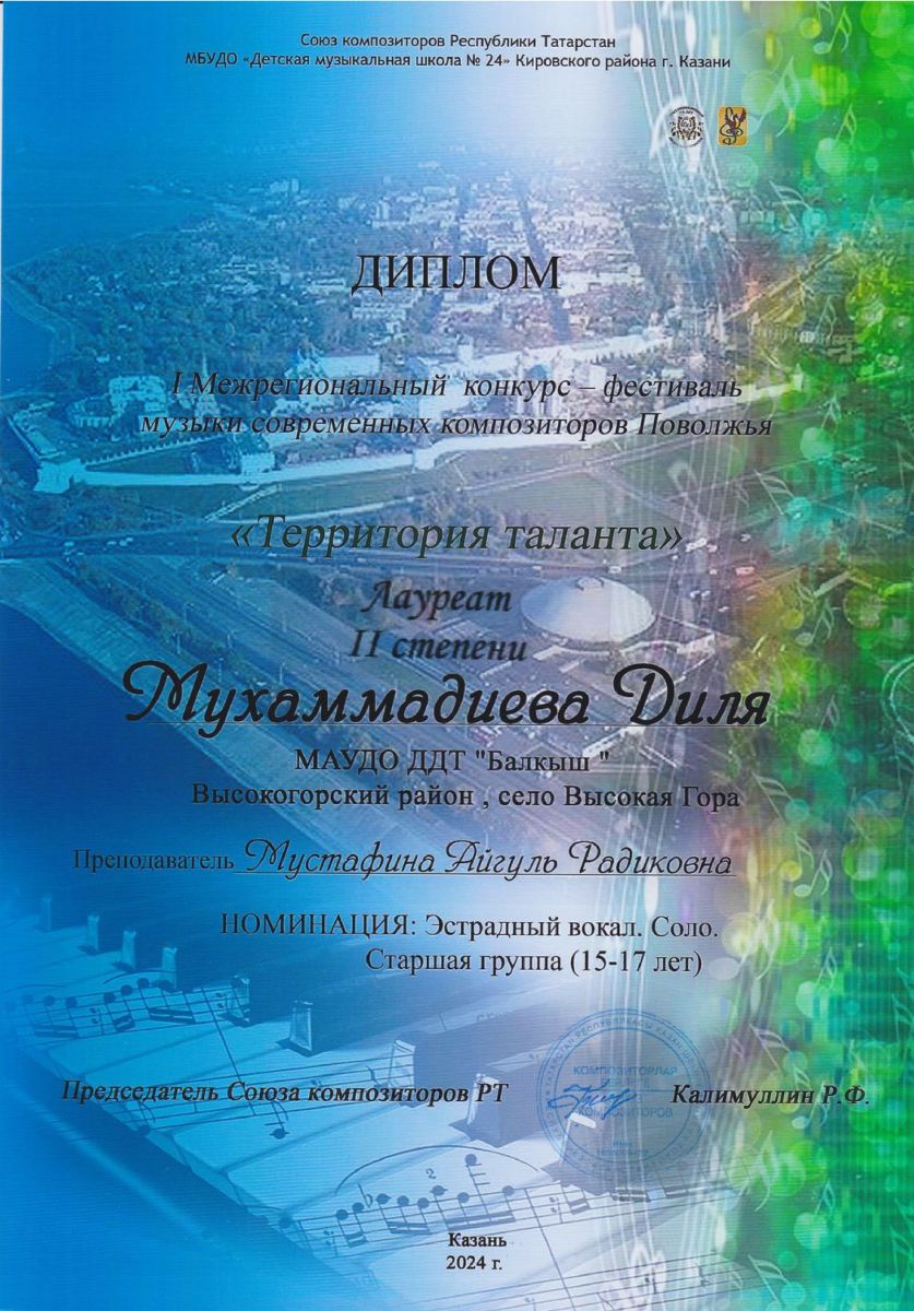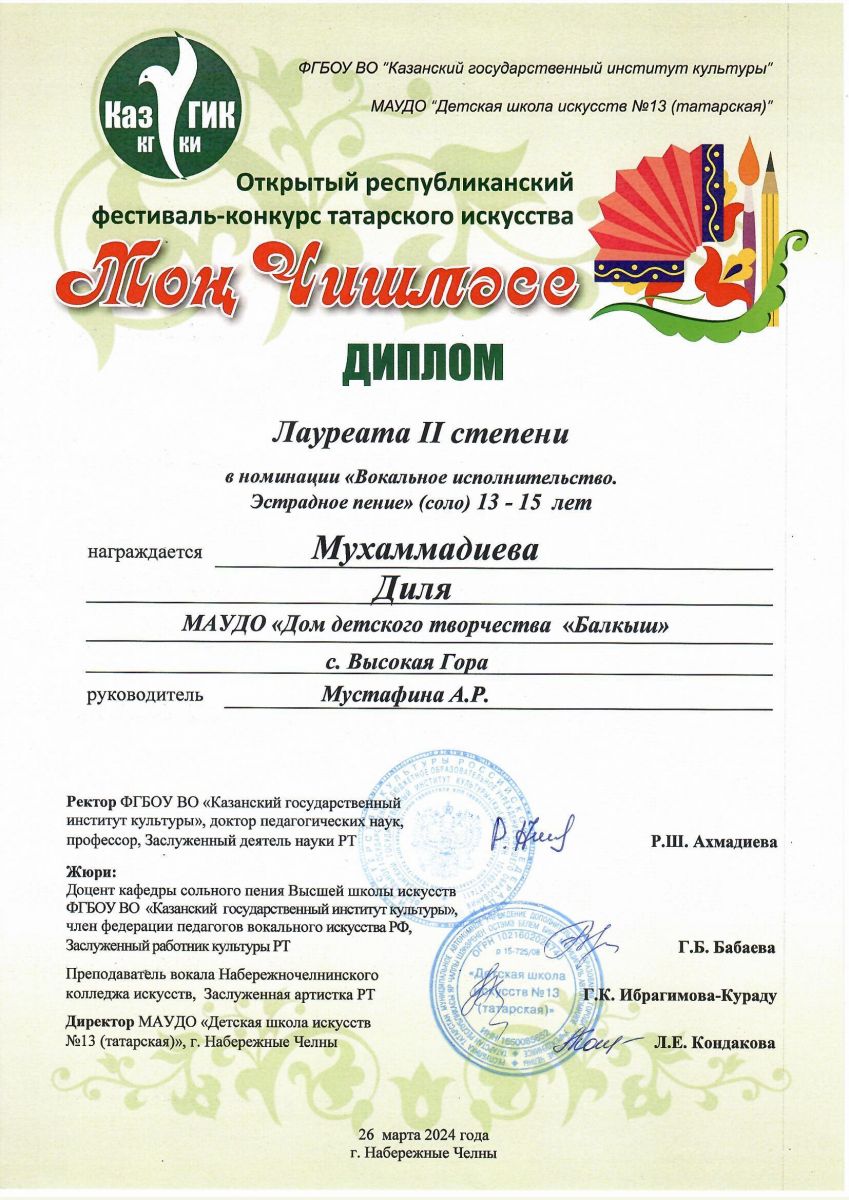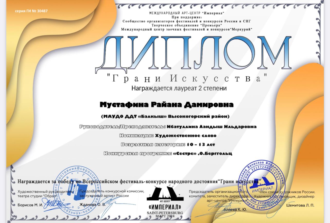 X Всероссийский фестиваль-конкурс "Великая Победа - 2024"- Мустафина Райана , лауреат 1 степени