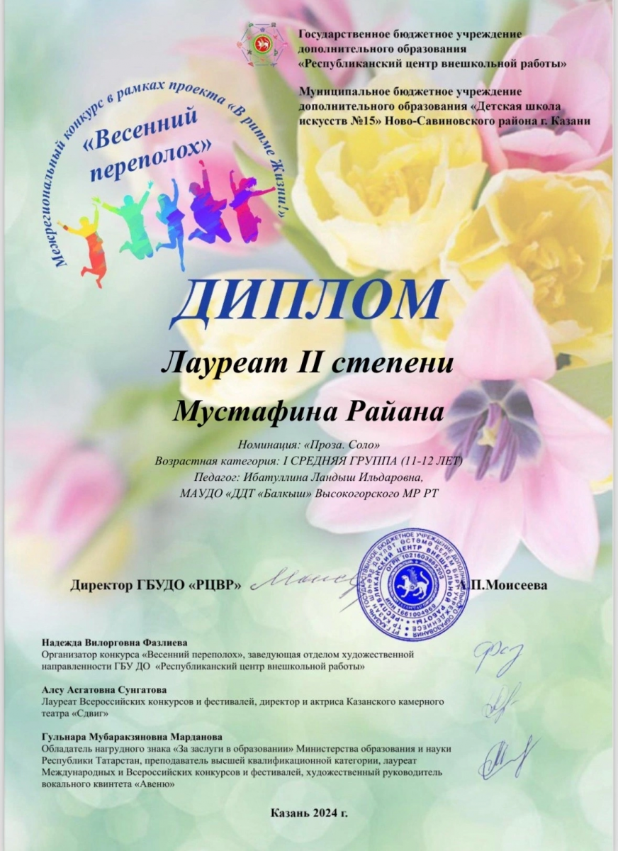 Межрегиональный конкурс "Весенний переполох" - Мустафина Райана, лауреат 1 степени