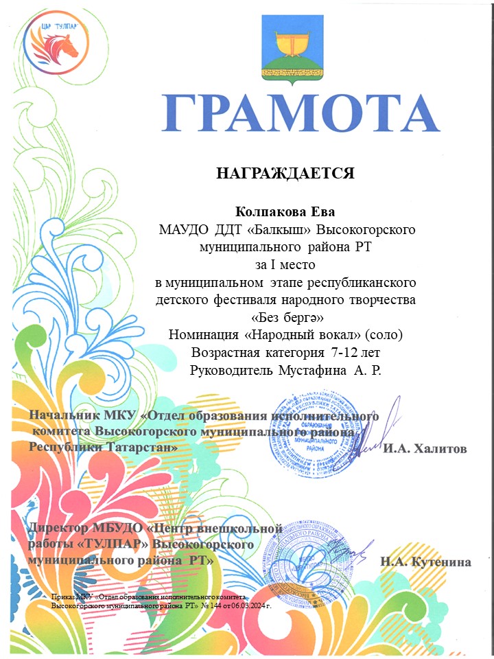 Муниципальное автономное образовательное учреждение дополнительного образования Дом детского творчества «Балкыш» Высокогорского муниципального района РТ